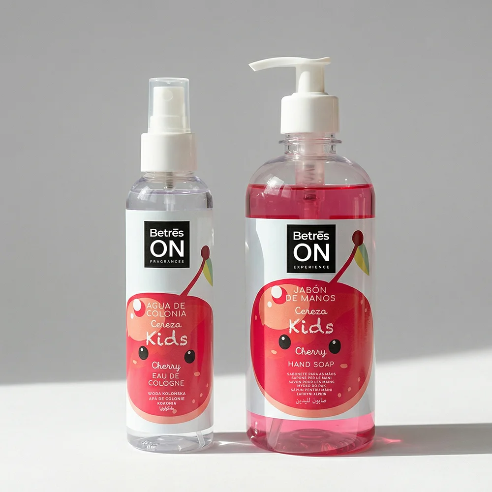 Pack Infantil Cherry, una propuesta pensada para los más pequeños, que combina jabón de manos y agua de colonia con una irresistible fragancia de cereza.